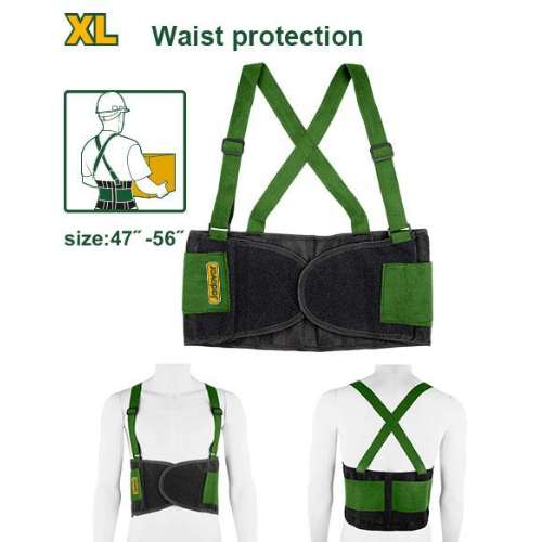 The belt protects the lumbar area while working and lifting to reduce the chance of strain or injury.